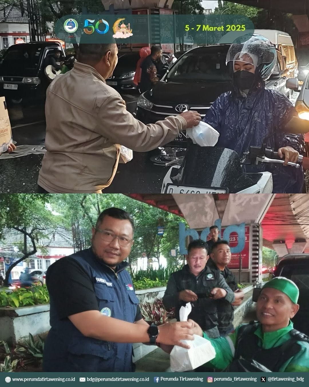 Pada tanggal 5-7 Maret 2025, dalam semangat berbagi di bulan suci Ramadhan 1446 H, Unit Kerja Keuangan, Unit Kerja Penagihan, serta Unit Kerja Bengkel, Altek, dan Tera Perumda Tirtawening Kota Bandung mengadakan kegiatan “Berbagi Takjil” untuk masyarakat.