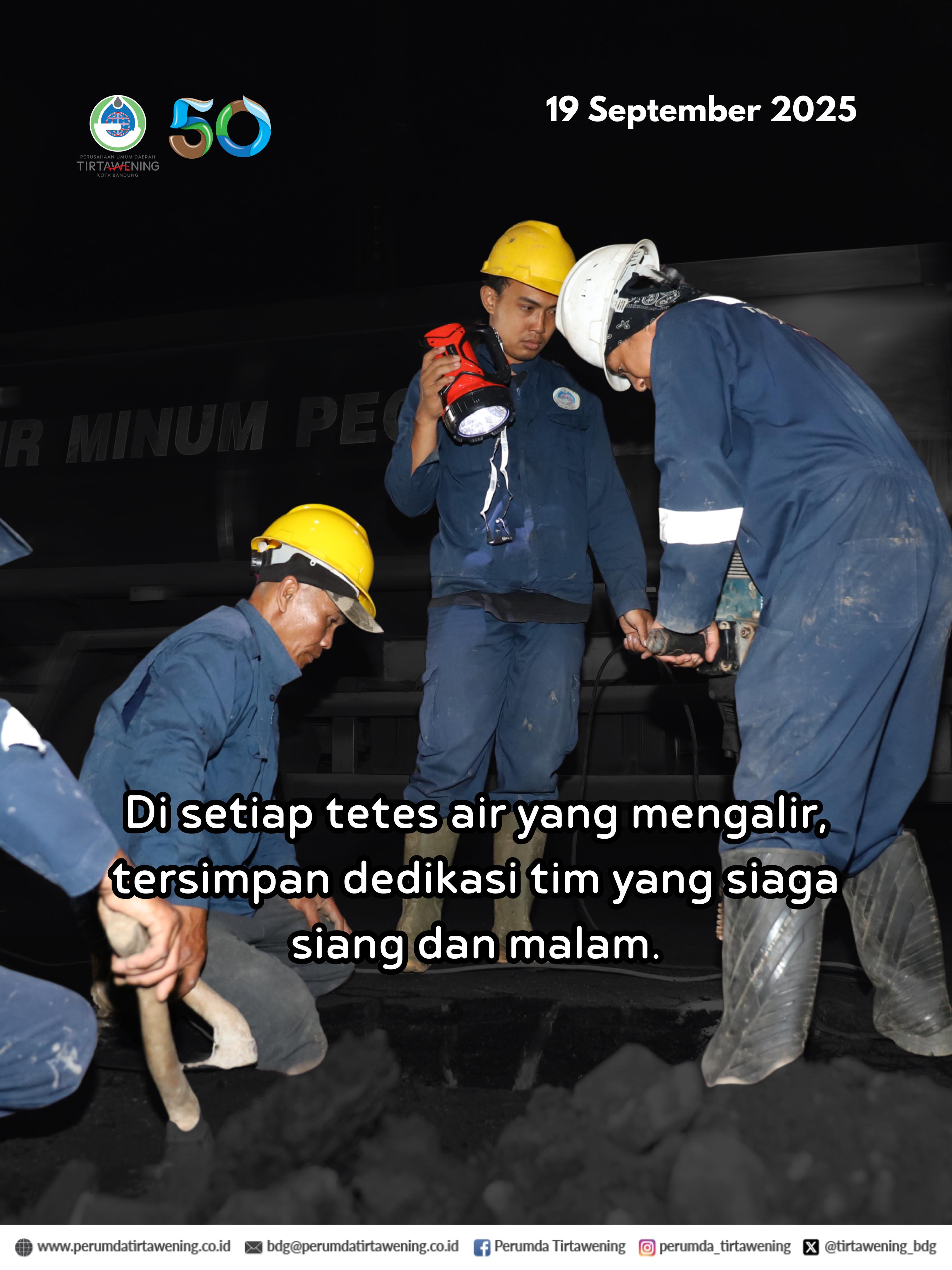 Di setiap tetes air yang mengalir ke rumah kita, tersimpan kerja keras dan dedikasi tim yang siaga siang dan malam. 💧🌙