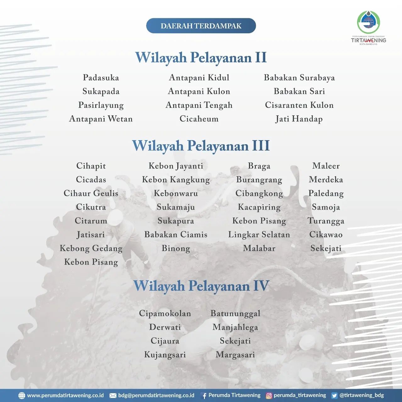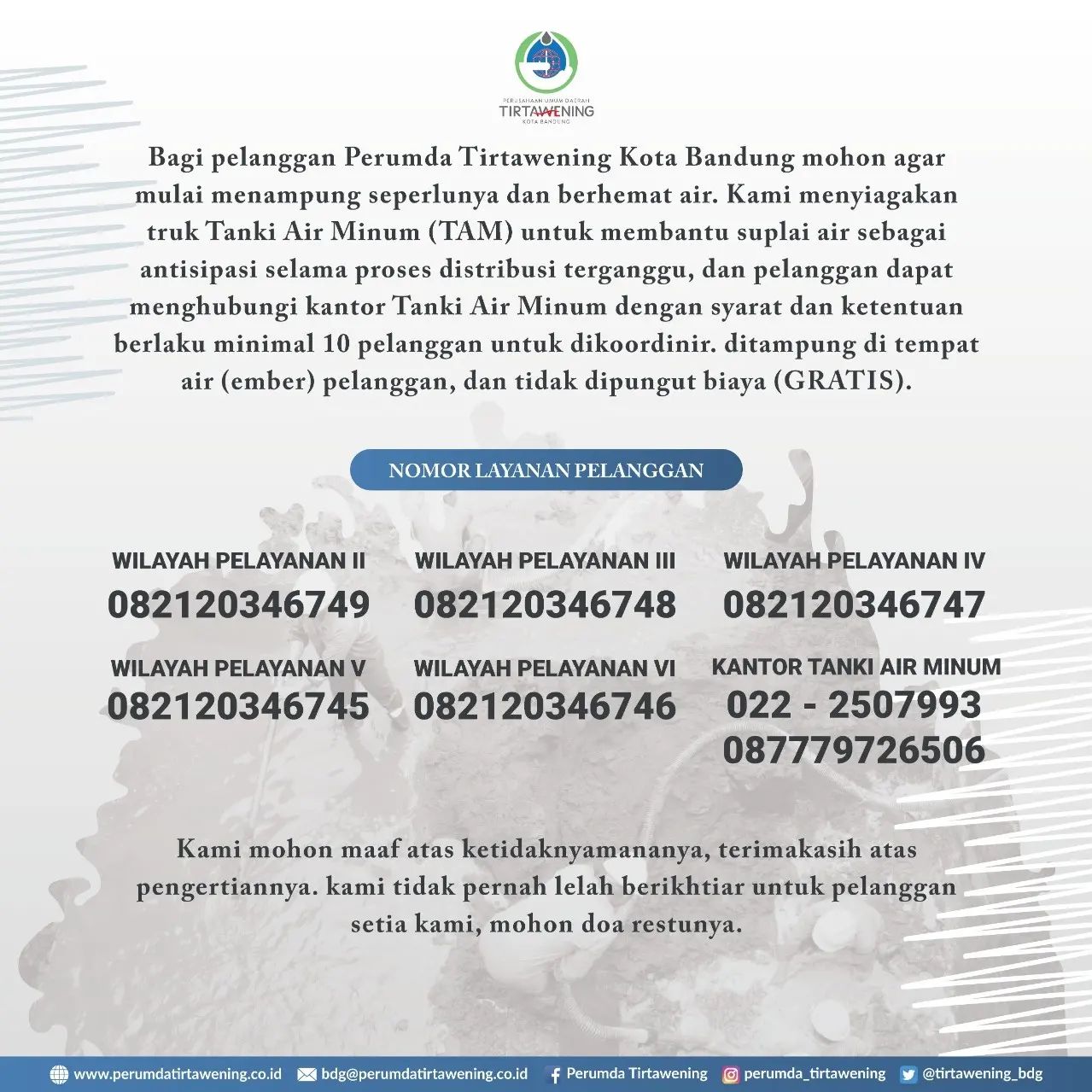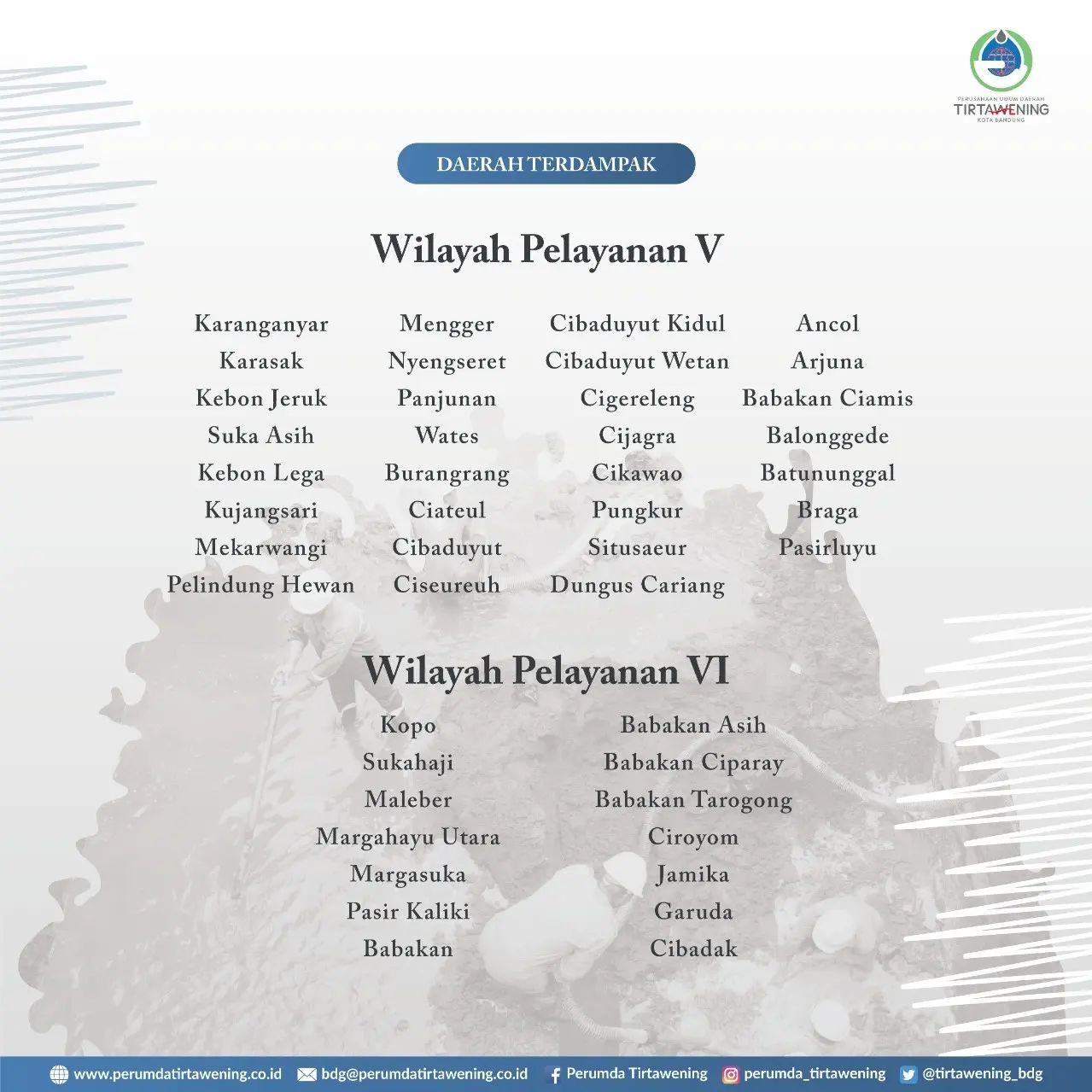 Jadi untuk Pelanggan Perumda Tirtawening yang daerahnya tertera di dalam infografis, jangan lupa menyimpan / menampung pasokan air seperlunya.