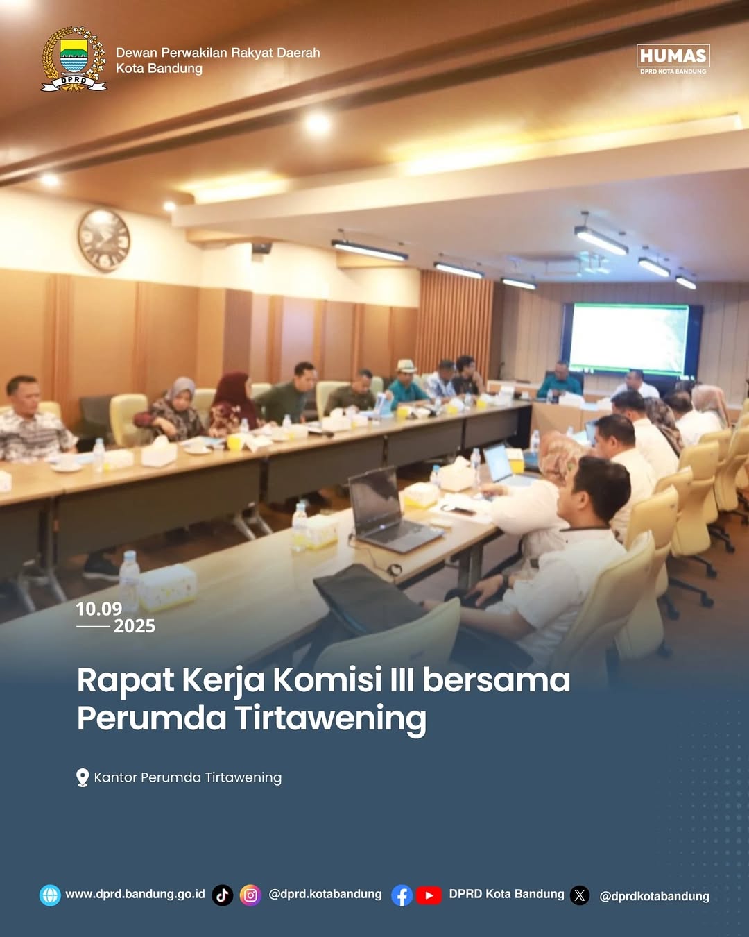 Rapat kerja dipimpin oleh Ketua Komisi III, Agus Hermawan serta dihadiri anggota Komisi III DPRD Kota Bandung.
