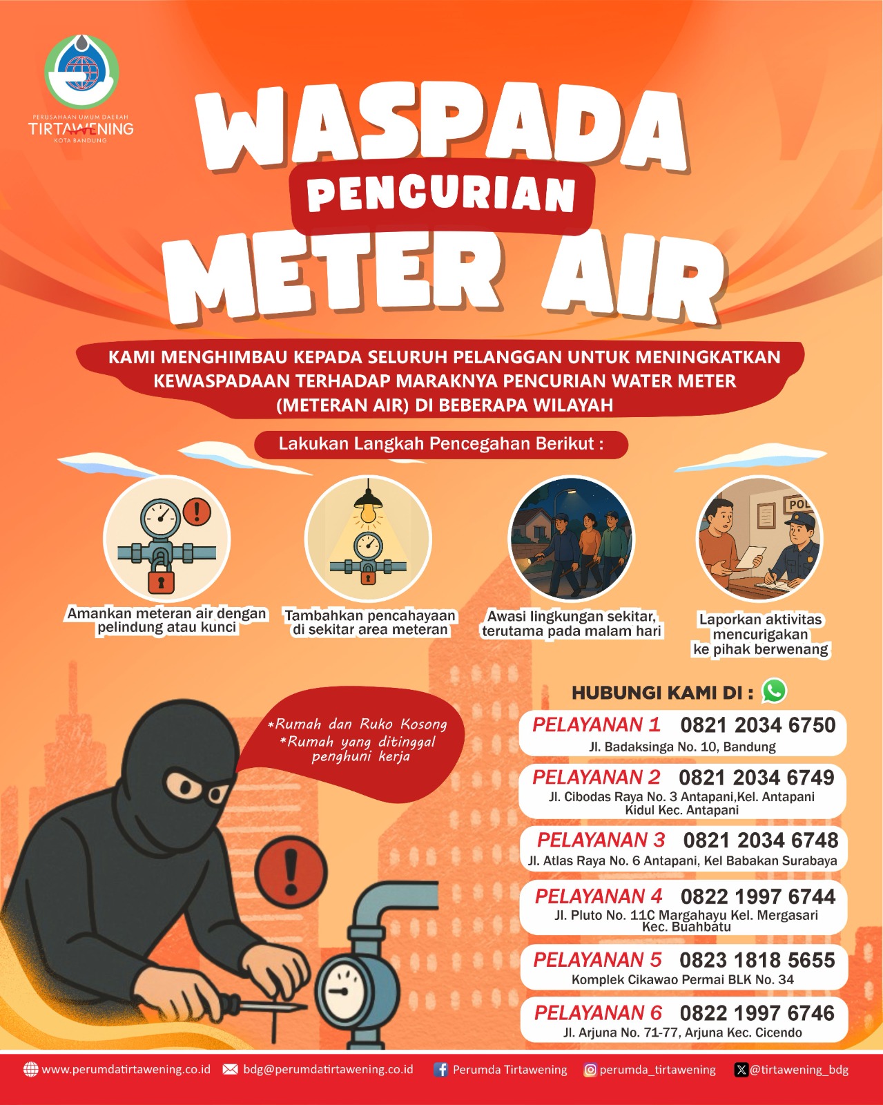 Maraknya pencurian water meter di beberapa wilayah membuat kita semua harus lebih waspada.