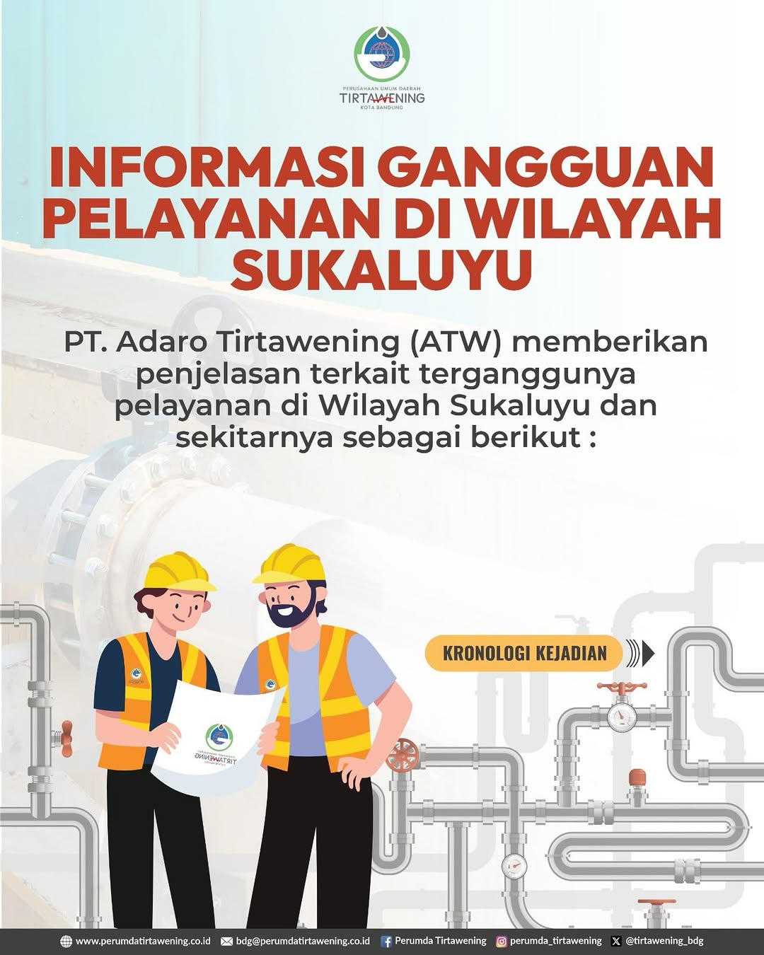Kami informasikan gangguan di wilayah Sukaluyu, Perumda Tirtawening bersama PT Adaro Tirtawening (ATW) memberikan penjelasan terkait terganggunya pelayanan di wilayah sukaluyu dan sekitarnya.