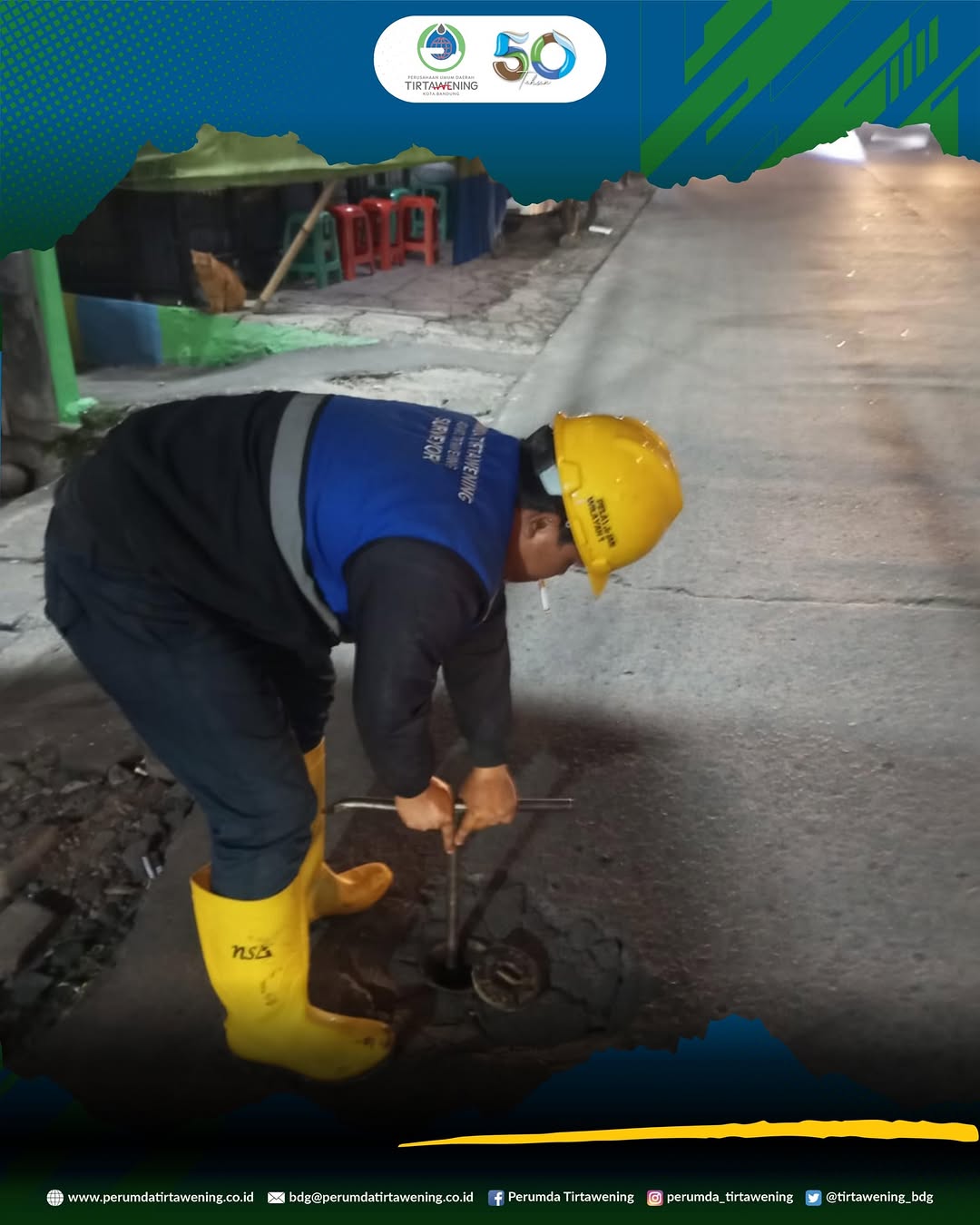 Rabu, 26 November 2025, petugas Perumda Tirtawening melakukan pemeriksaan gangguan pengaliran di RT 03 RW 13, Cukangkawung.