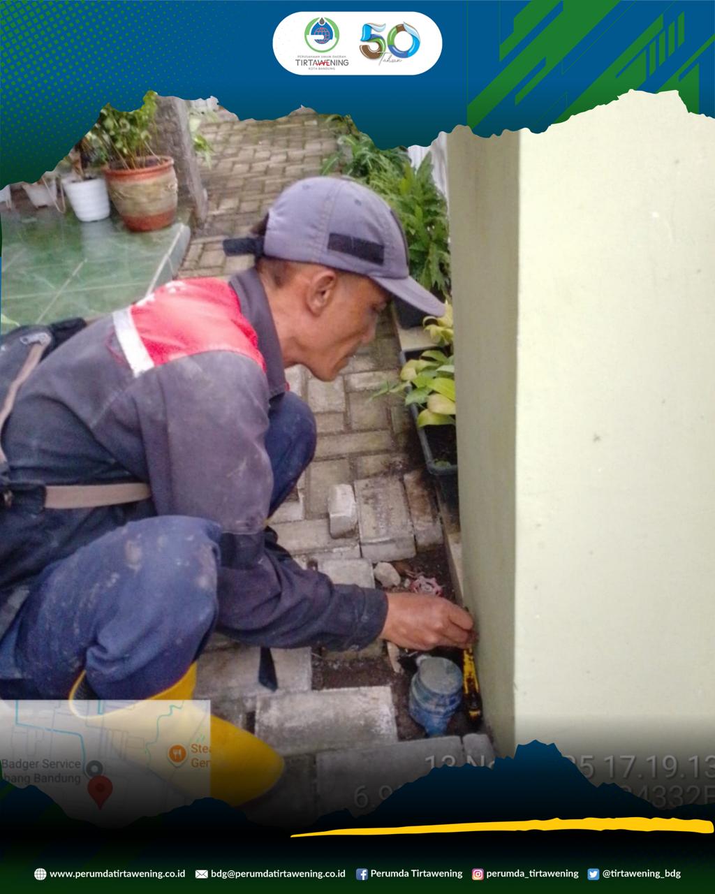 Petugas Perumda Tirtawening telah dilakukan pemeriksaan pada kondisi air dirumah daerah Jl. Riung Aalutu dengan keluhan tidak keluarnya air selama beberapa waktu.